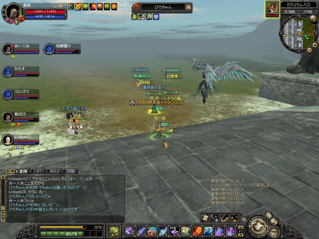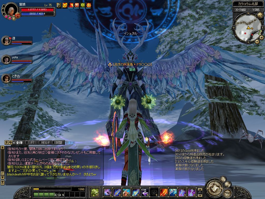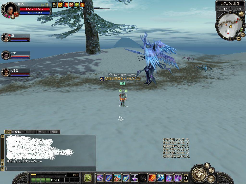 すると、おもしろいモンスターに遭遇しました 【モンスターの頭上に注目。。。の図】 ・・・クエくれるの!? 【痛すぎるけど奮闘する。。。の図】 時間かかりまくって、なんとか倒したけど何も無し・・・ お金さえも無し・・・ 収穫な~んも無し・・・ いや、もしかしたら私は手に入れたのかもしれない・・・ 達成感という、かけがえのないものを! なんだこのオチは・・・・orz PR |
