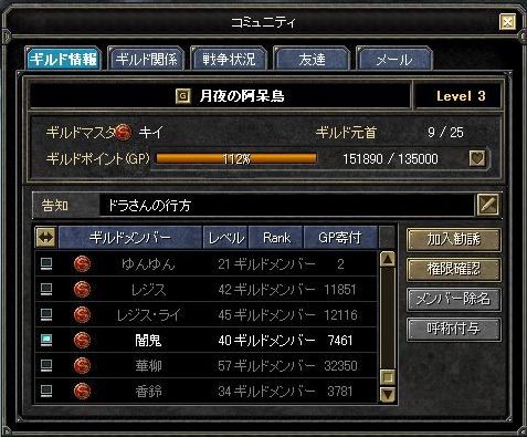 なんと闇鬼さんが^^ 復活おめでとう~^^ つい証拠写真を撮ってしまったw レジスさん曰く昼間からいるとのこと^^ この調子でガンガンINしておくれ~ 本日の一枚 同盟でPT組んでたときにイシュが出たとの報告が^^ 急いで走っていきました。 とりあえず突撃前に一枚・・・突撃した瞬間イシュ倒されましたw 今度こそもっと早く駆けつけるぞ^^ |