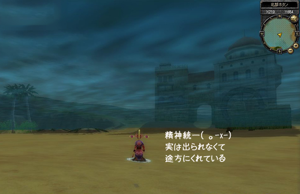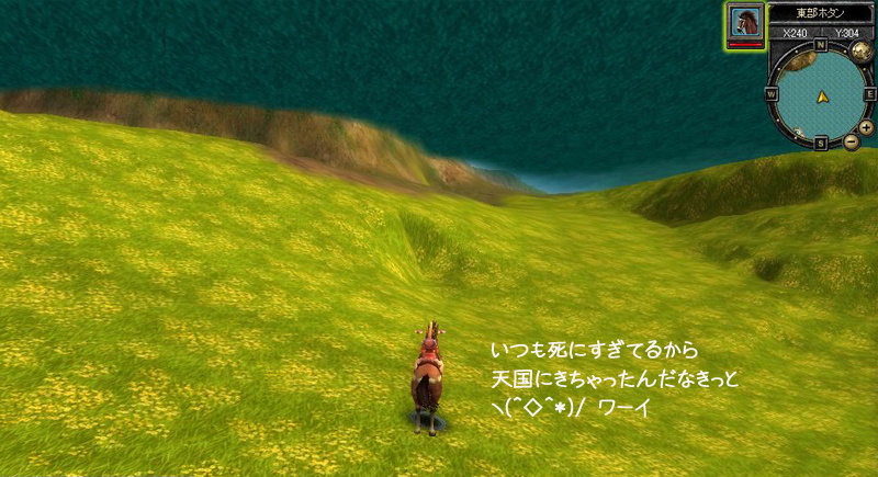 メンテ明け直後、一番乗りしました! ・・・・・ すみません、嘘ですw どうやら、ゲームサーバーに繋がった直後、他PCの位置情報などが来る前に接続落ちした模様です。 珍しいので、なんとなくSS撮っておきましたw |