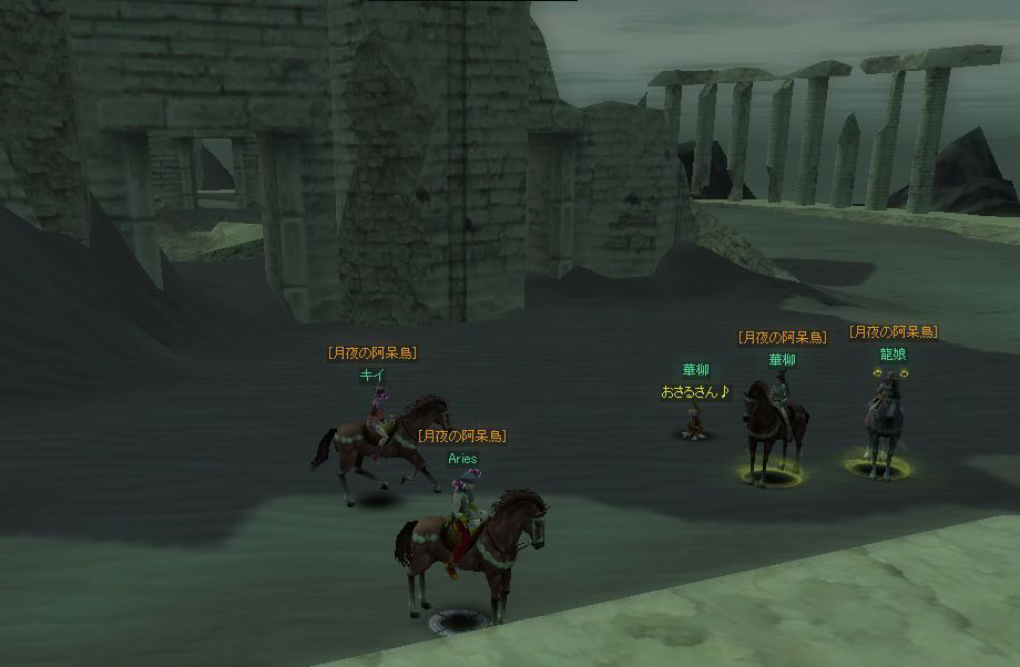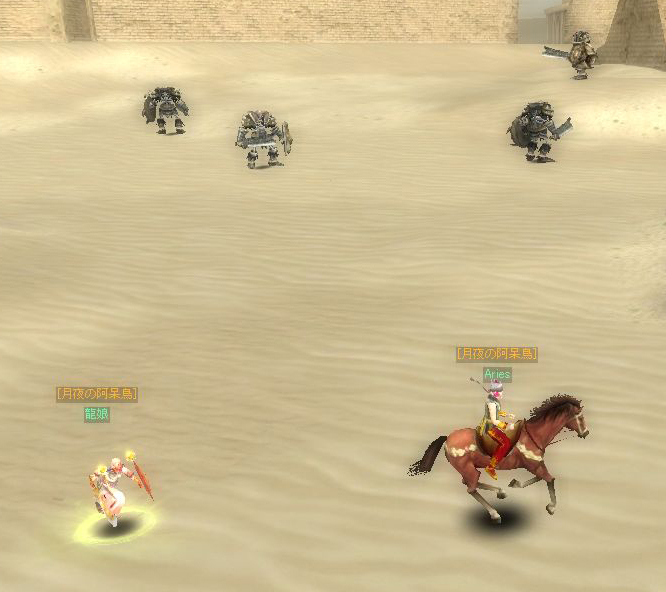 『ニヤ遺跡ツアー』にAriesさん、ドラさん、華ちゃんと4人で 行ってきました。 逃げの一手しかない旅路でしたが、 途中、そんな危険地帯で狩りをするツワモノに 「遠足ですか?」などと聞かる出会いなどもあり なかなか楽しかったです(^ー^* ) そのツアーの画像をAriesさんがくれたので、アップしますー (ちなみに、画像はクリックすれば拡大表示されます) 【 ニヤ遺跡までの軌跡 / 撮影者・各写真タイトル Aries 】 0【出発】 1【ミミズの群れ】 2【豊かな寺院】 3【記念撮影】 4【目的地は遥か彼方】 5【逃げろ】 6【ピンチ】 7【死んだ】 8【死体がごろごろ】 9【G発見】 「ニヤ遺跡」そのものには、4人とも辿り着けましたが、 σ(・_・)に関して言えば4回くらい死にましたし、 遺跡の左上のスペースが本当の目的地だったので(私の中では) まだ完全なる目標は達成していないと言えましょう。 また近いうちにリベーンジ!!( ̄Д ̄)ノ (注意)【逃げろ】の画像に関しましては、ドラさんの走っている形相があまりにも怖くて、Ariesさんが逃げているわけではありませんので、あしからず <(_ _)> |