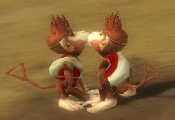 ふと気付くと、ウチのおさるさんが! ・・・他のプレイヤーさんのおさるさんとキスしてました(笑) キスだけじゃ飽き足らないのか、頬をすり寄せ合ったり、互いの肩に顔を埋めたりと、人目も気にせずとんでもないバカップルぶりでしたよ(爆) |