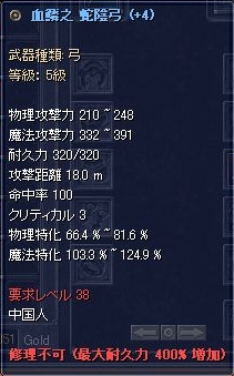 昨日も死の谷で経験値稼ぎのための赤眼狩りをしていたら、その1G露店開催の全チャが流れました。 で、その20分後くらいに矢がなくなって敦煌に戻ったので、1G露店を探してみることに。 ウルチ品なら、自分で使えるものがなくても、ギルメンの誰かにプレゼントできる品があるかもしれないしね。 全チャが流れてからもうかなり時間経ってるし、たぶんもう終わっちゃってるだろうな~。 でも、まだ終了告知は出てないから、ダメモトでそのへん見回ってみよう。 そう思いながら敦煌をうろついていると、建物と壁の間の狭い隙間に何人かの人が固まっているのをレーダーマップで発見! おお、ここかな!? 私も早速その隙間に入り込んでみました。 が! 確かにそこには全チャで1G露店の告知をしていたプレイヤーさんがいたのですが、露店は出してません。 それどころか、周りにいたのはそのプレイヤーさんと同じギルドの人ばかりで、どうやら露店のお客さんではなさそうです。 うわ~、1G露店なんてもうとっくに終わって、仲間同士のご歓談タイムに入ってたんだ! 私ったら、なんかタイミング逸したこともわかってなくてのこのこと現れた莫迦なクレクレ君みたいで、ハズカシ~(>_<) シャイな私(w)は思わずダッシュでそこから逃げ出してしまいましたw ところが、その人からささが入ったのです。「アイテム?」と。 「うん、まだ間に合うかなと思って覗いてみましたw」と返事したら、なんと、「誰ももらってくれないから、もらってくれる?」というお答えが。 ということで、7つも頂戴してしまいましたm(._.)m 「うちのギルメンはこのくらいのLvの人が多いので、みんなで分けますね」と言ったら、喜んでいただけたようです(^-^) ということで、いただいたアイテムは以下の7点。 ギルドのみんなの中で何か使いたいものがある人いたら、ここにコメントするかシルク中で声かけてちょ。 うちのギルドにユーザーがいなかった場合、ギルド外の友達にあげるのでもOKですよん。
