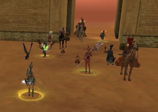 今日開催された運営イベント「君と僕の貿易イベント」に参加してみました。 最初は、「ウチのマシン非力だから、大規模キャラバンなんかやったらラグラグでどうにもならないんじゃないか・・・」って思って参加を躊躇っていたのですが、とりあえず雰囲気だけでも味わってみるかと参加することにしました。 でも、開始時刻ギリギリまで用事があったので、いそいで終わらせてINし、長安に飛んでみると・・・ いるいる、すごい人だかり! 一応公式アナウンスでは、集合場所は『はじまりの場所』ってなっていたけれど、そう言われたってマップにも表記されてないんだから、わかる人少ないよね(笑) 案の定、みんな特産品屋さんの前でわいわいがやがや。さて、どうやってPTに入れてもらおうかなと思案していたところにPTインバイトが飛んできたので、ありがたくそこに入れさせていただきました(^-^) で、4人そろったら出発進行! ラグも思ったよりひどくなくて、それなりに快適です。それに、周囲にたくさんPCがいるから、沸いてくる盗賊NPCも気づき次第みんなでどんどん殴りかかる感じで、特に危険を感じることもないまま、あれよあれよという間に敦煌に到着しました。 でも、到着後の告白タイム(!?)は・・・ 「私は通常プレイヤーなんですけど」「あ、自分もです」という具合で、うちのPTには運営キャラはいませんでした(>_<) 残念! でも、楽しかったよ♪ 画像は、上がPTメンバーみんな揃って敦煌に到着したところ。下は、積荷の売り捌きも終えてほっと一息ついているところ。集合時刻に遅れそうでアセっていたから、ラクダのつもりで馬を買ってしまったことは秘密(笑) |