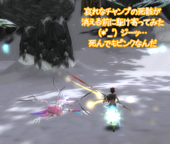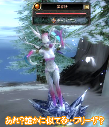 アンデルセンの「雪の女王」やったなぁ (10人いた「バラの精」のうちの1人だったけど) と思い出しながら倒している最近のお気に入り ●ヨワ子なので、まだ1匹づつしか倒せません ●チャンプはピンクでちょっとみつけやすい ●雪の中なのにピンクってイチゴ味? ●死んだ時に転がるあなたを見守ります ●ジャイアンすげーでけー ●フレームアウトも気にしない華麗なジャンプ 見た目がキレイなのと、飛び上がったり、 死ぬと遠くに転がっちゃうとこが面白くてスキ ロック山とか石窟にも 面白い動きのモンスターいるといいなぁ そしたらレベル上げ頑張るのに(* ̄∇ ̄*) |
